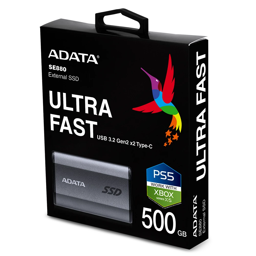 Az Adata Elite SE880 külső SSD meghajtó akár 2000 MB/s olvasási/írási sebességet is képes elérni, ami nagyjából 20-szor gyorsabb, mint a hagyományos külső merevlemezek, amelyek sebessége csak körülbelül 100 MB/s. Ez lehetővé teszi, hogy közvetlenül az SE880-on végezzen intenzív feladatokat, legyen szó A/V szerkesztésről vagy egyéb alkalmazásokról. A kompakt és könnyű SE880 könnyen a tenyerében tartható, vagy táskákba vagy csomagokba helyezhető a páratlan hordozhatóság érdekében. A legtöbb legújabb játékkonzolt támogató SE880 ideális az összes játék tárolására anélkül, hogy túl sok helyet foglalna el. Legyen szó Androidról, macOS-ről, Windowsról vagy más operációs rendszerről, nem kell aggódnia a kompatibilitás miatt. Csak csatlakoztassa a Type-C porton keresztül.