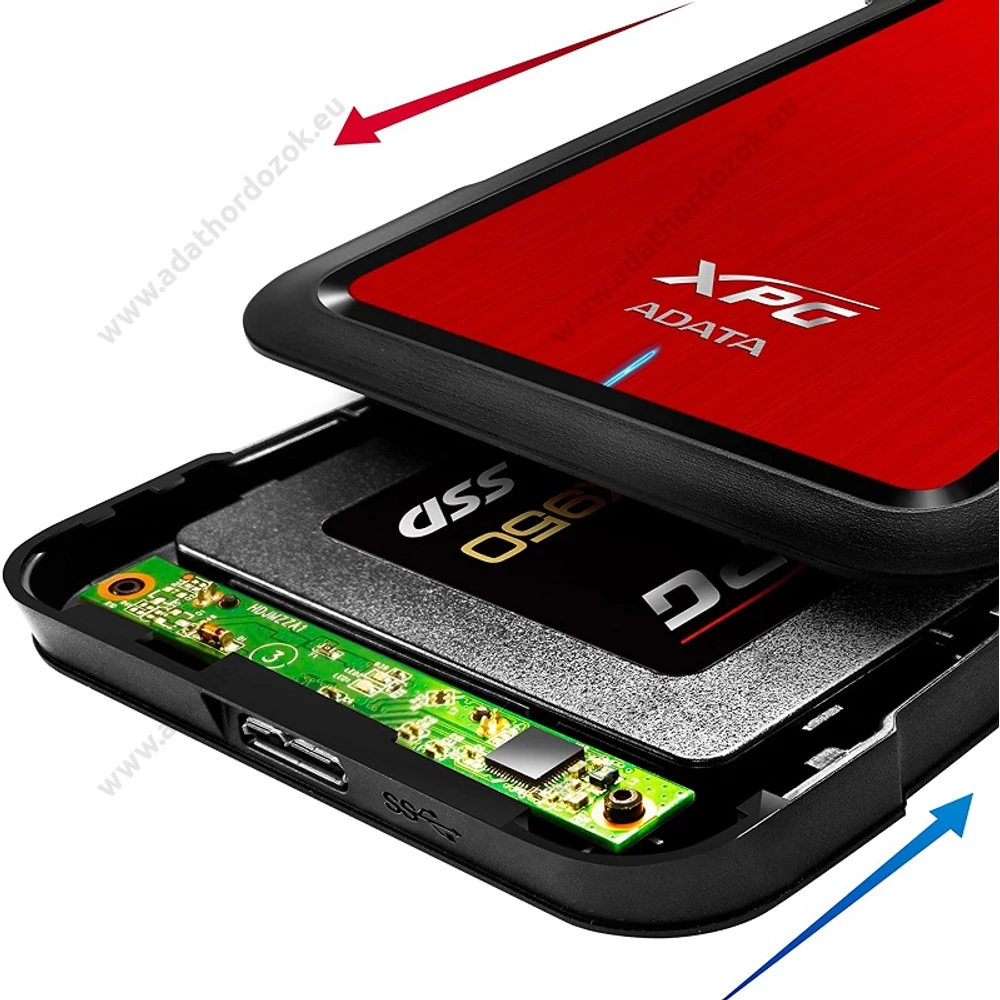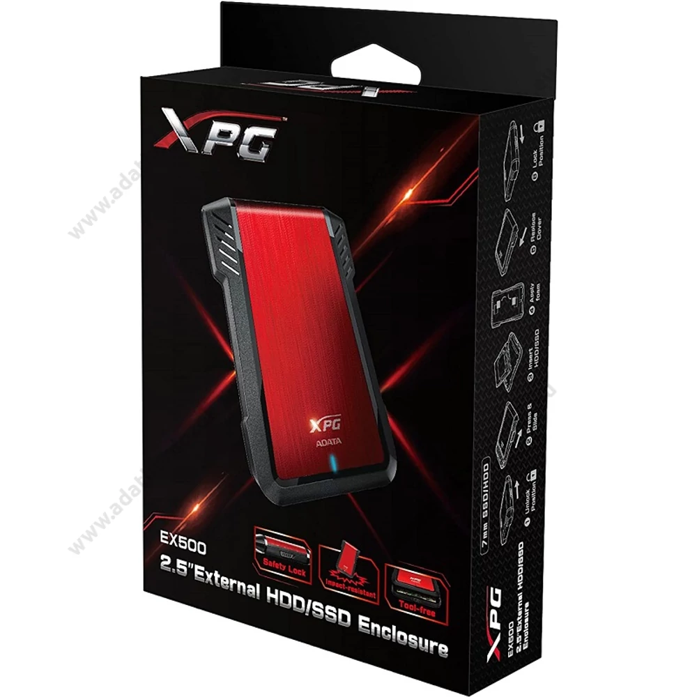 ADATA EX500 2,5 COL USB 3.1 KÜLSŐ MEREVLEMEZ/SSD HÁZ PIROS-FEKETE