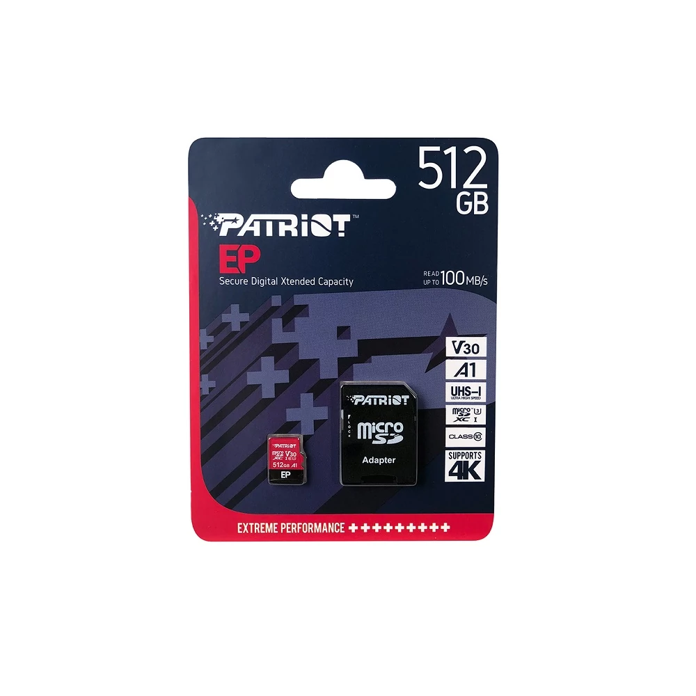 PATRIOT EP MICRO SDXC 512GB + ADAPTER CLASS 10 UHS-I U3 A1 V30 100/80 MB/s
