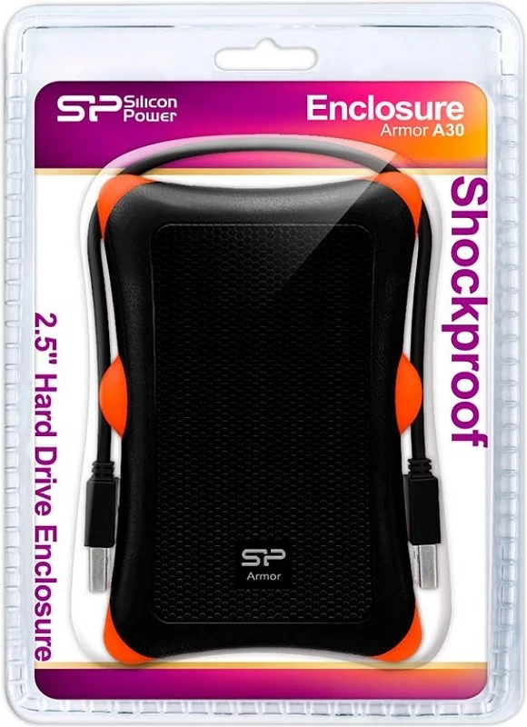Digitálisan tárolt adatait biztonságban tudhatja a professzionális kialakítású Silicon Power Armor A30 USB 3.0 ütésálló és cseppálló külső merevlemez-ház segítségével. Innovatív megoldásainak köszönhetően többszintű védelmet biztosít; a hexagonális merevítésű karcálló külső pajzs, valamint a sarkokat és az éleket védő rezgéselnyelő szilikonpárnák együttesen egy rendkívül masszív külső héjat eredményeznek, így a beépíthető 2,5” méretű adathordozót kivételes mértékben megvédi a külső mechanikai hatásokból eredő sérülésektől. A külső merevlemez ház megfelel a szigorú amerikai katonai MIL-STD-810G tesztnek, így szélsőséges időjárási –és hőmérsékleti hatások esetén is megbízhatóan működik. Hibátlanul használható a régebbi USB 2.0 interfészen is, de kompatibilis a „SuperSpeed” USB 3.1 Gen1 csatlakozókkal, ezért kiemelkedően magas adatátviteli sebességet biztosít, ennek köszönhetően a másolással töltött idő jelentősen lerövidül. Kompatibilis a jelenleg használt operációs rendszerekkel. Külső tápellátást nem igényel, a működéshez szükséges energiát a mellékelt USB 3.1/USB 3.1 kábelen keresztül az USB interfészből nyeri. Méretei: 87,5 x 134 x 18,6 mm. A csomag 1db Silicon Power Armor A30 USB 3.0 ütésálló és cseppálló külső merevlemez házat tartalmaz fekete-narancssárga színben (merevlemez nélkül!).